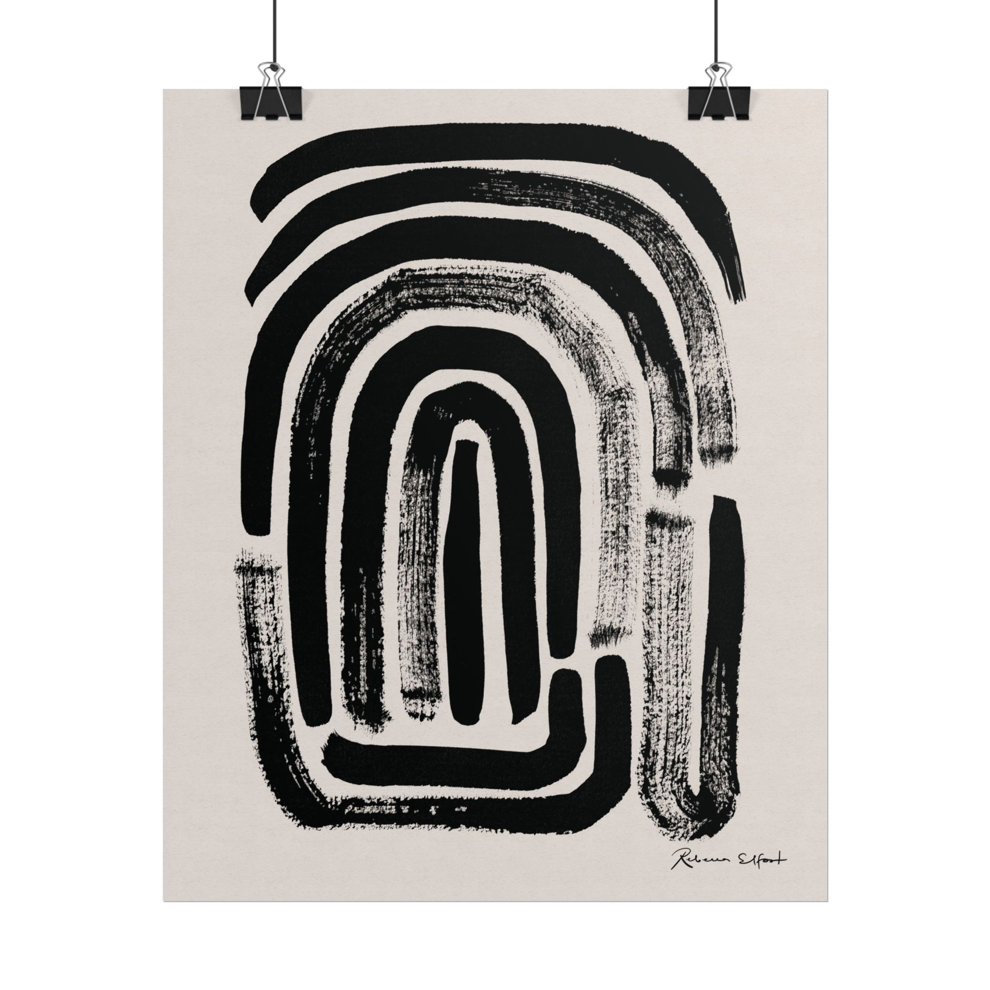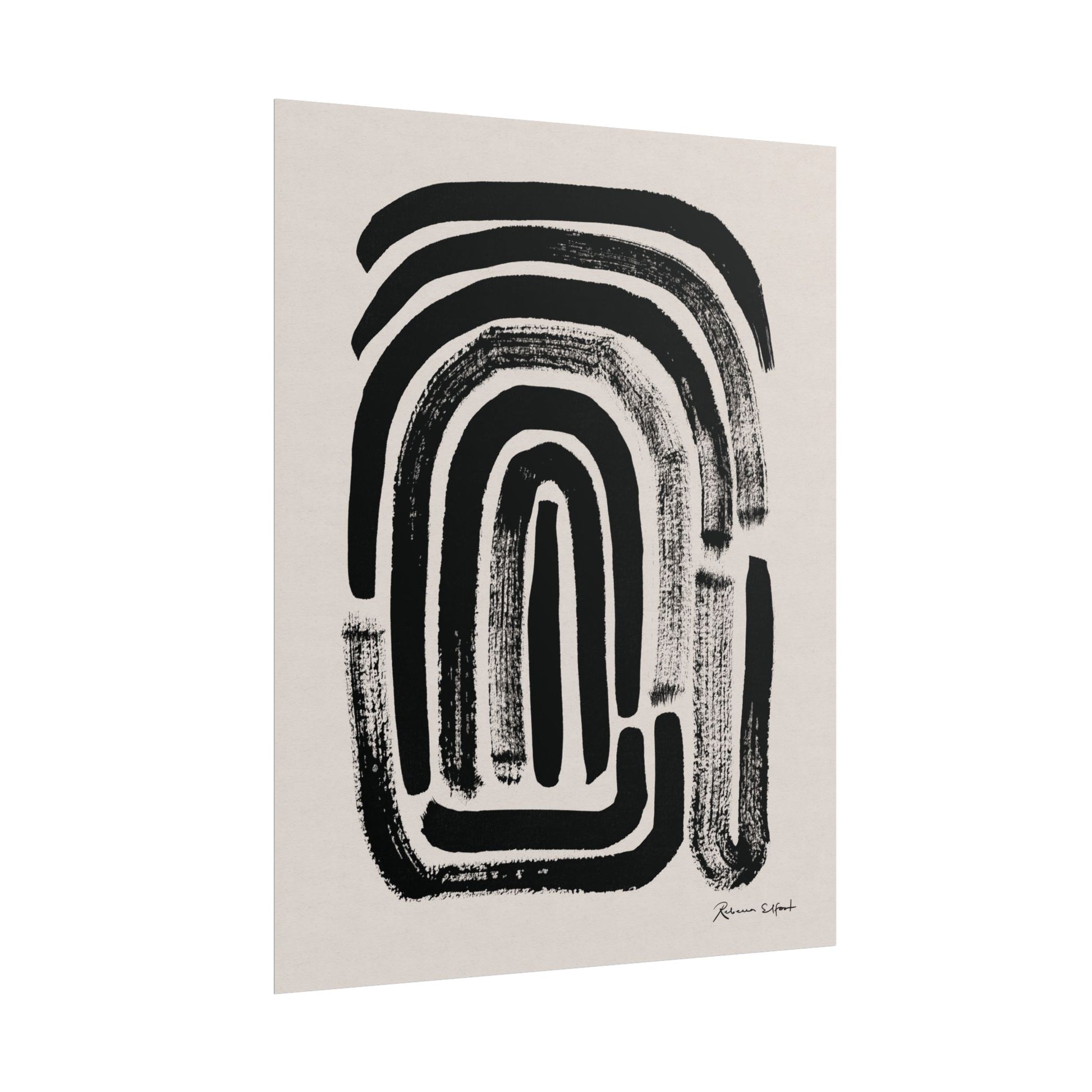This art print brings Rebecca Elfast’s original ink painting into your space with bold graphic vibes. An abstract motif that reminds of a fingerprint, rendered in confident black strokes adds an eyecatching focus point to your space. Unframed and ready to unroll, the print slips into a wide range of interiors: a calm corner for evening reading, a sunlit bathroom shelf, or a gallery wall mixed with travel finds.