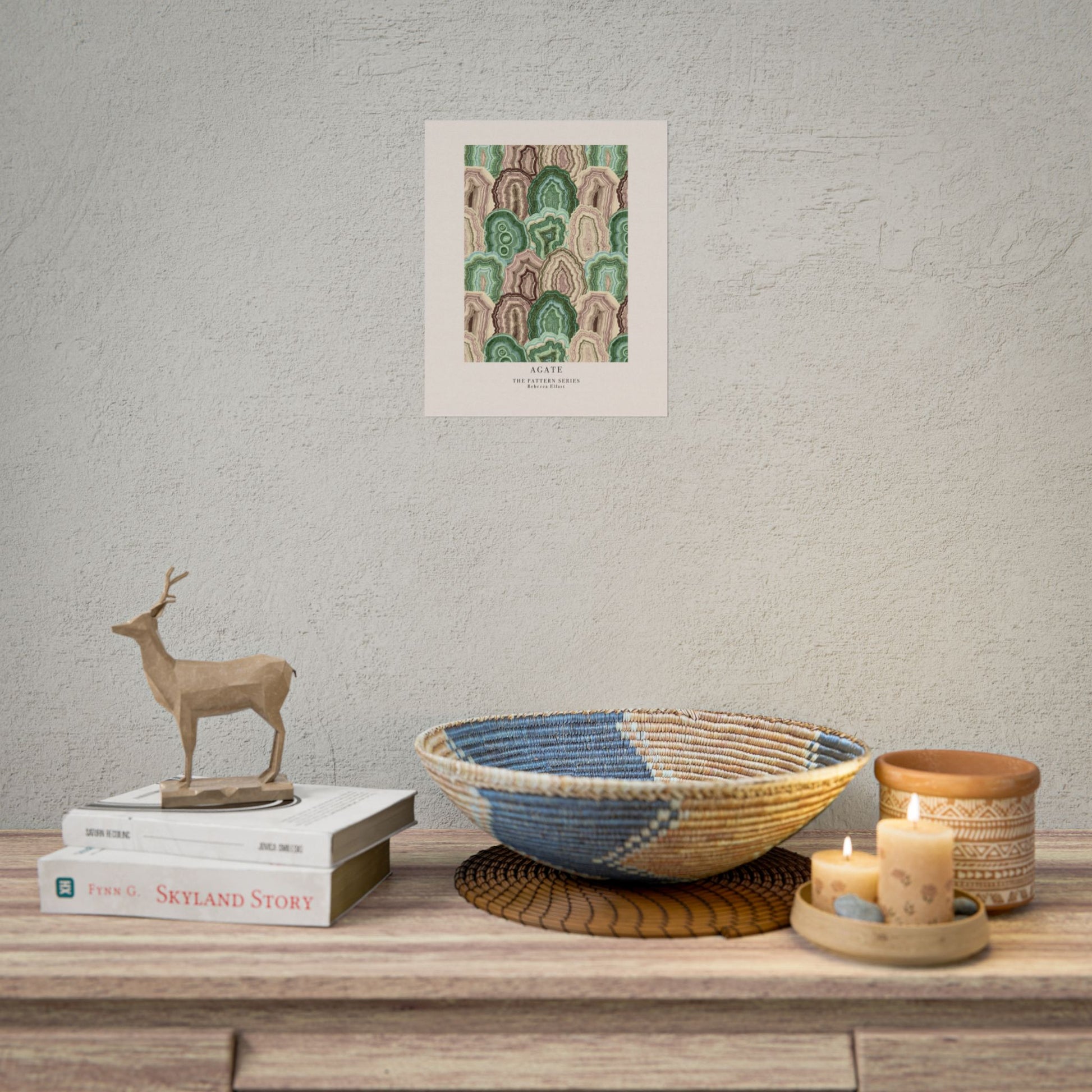 This art print brings Rebecca Elfast’s original artwork into your space, in the form of a beautiful pattern. This poster, featuring intricate agate slices adds an eyecatching focus point to your space. Unframed and ready to unroll, the print slips into a wide range of interiors: a calm corner for evening reading, a sunlit bathroom shelf, or a gallery wall mixed with travel finds.