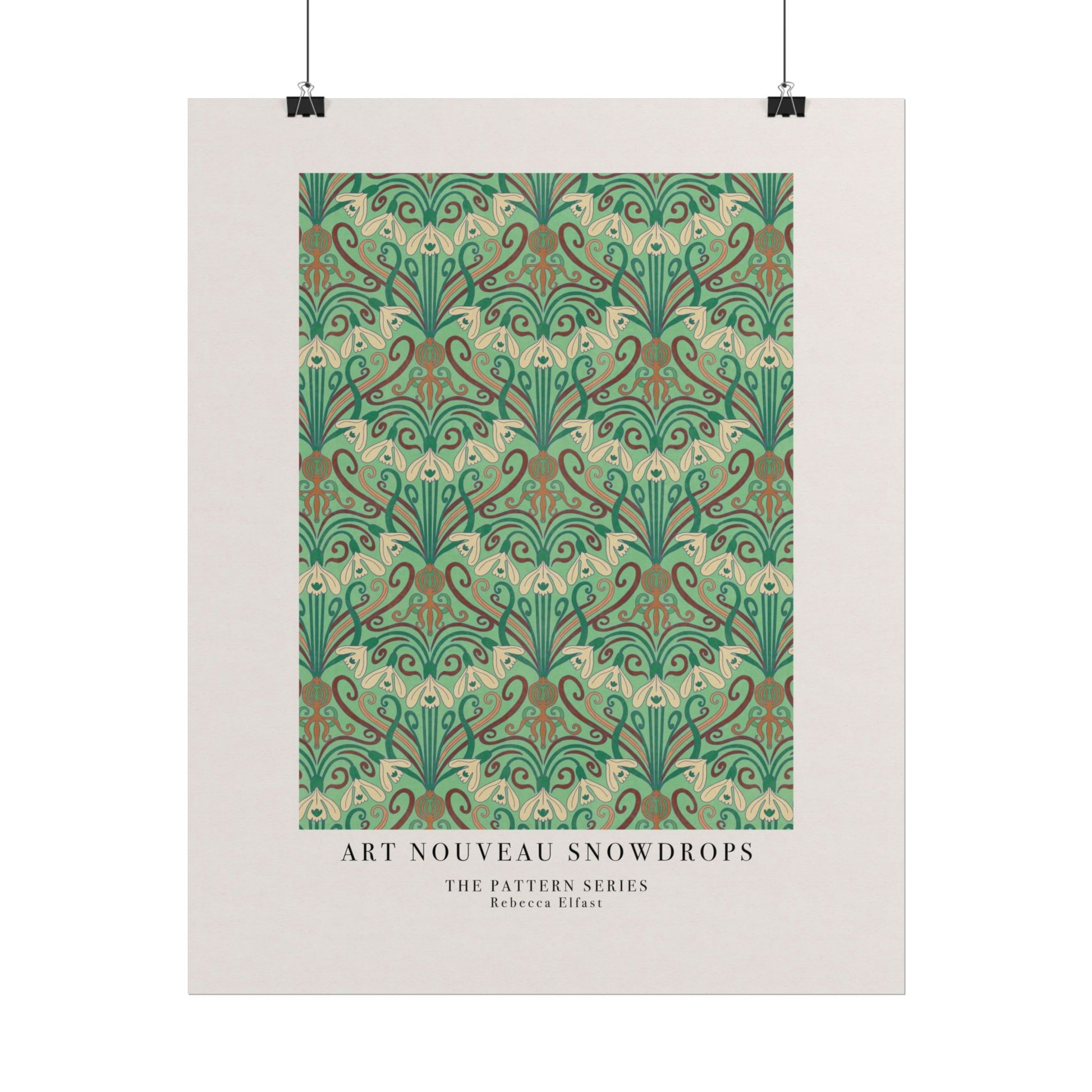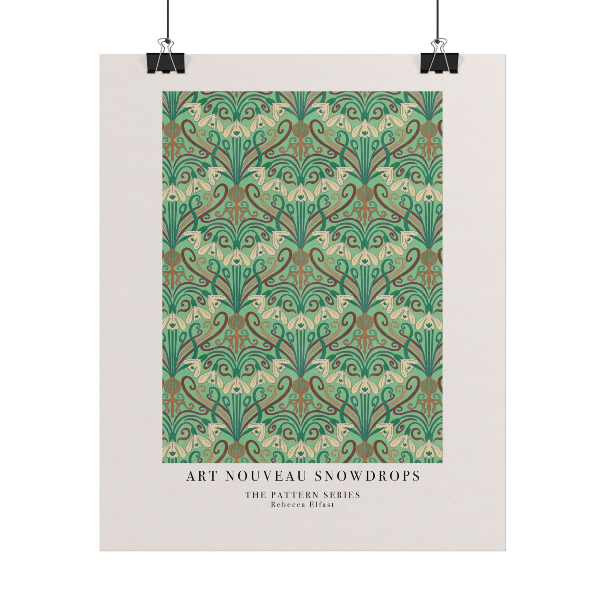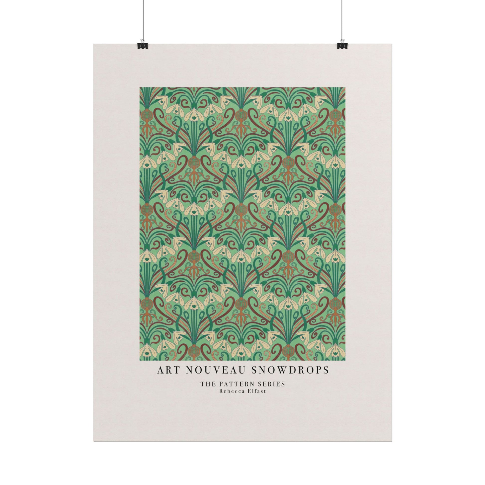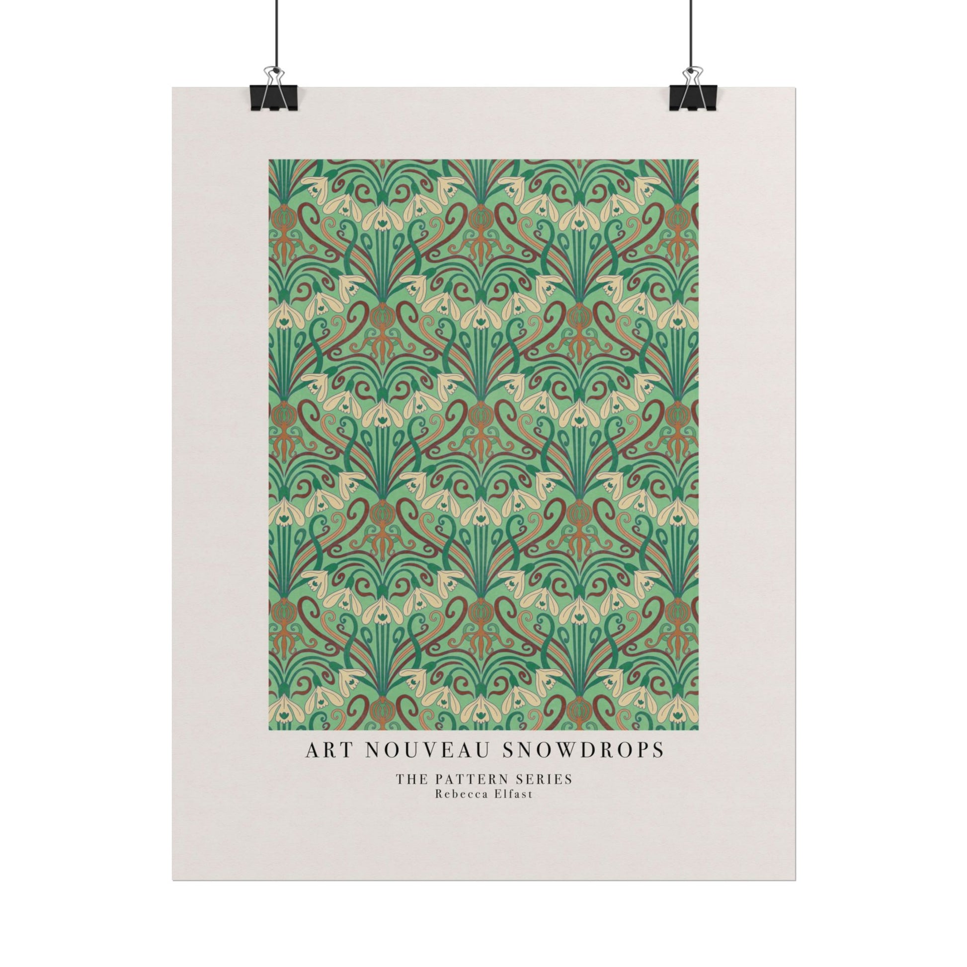 Art Nouveau Snowdrops Green - The Pattern Series - Art Print