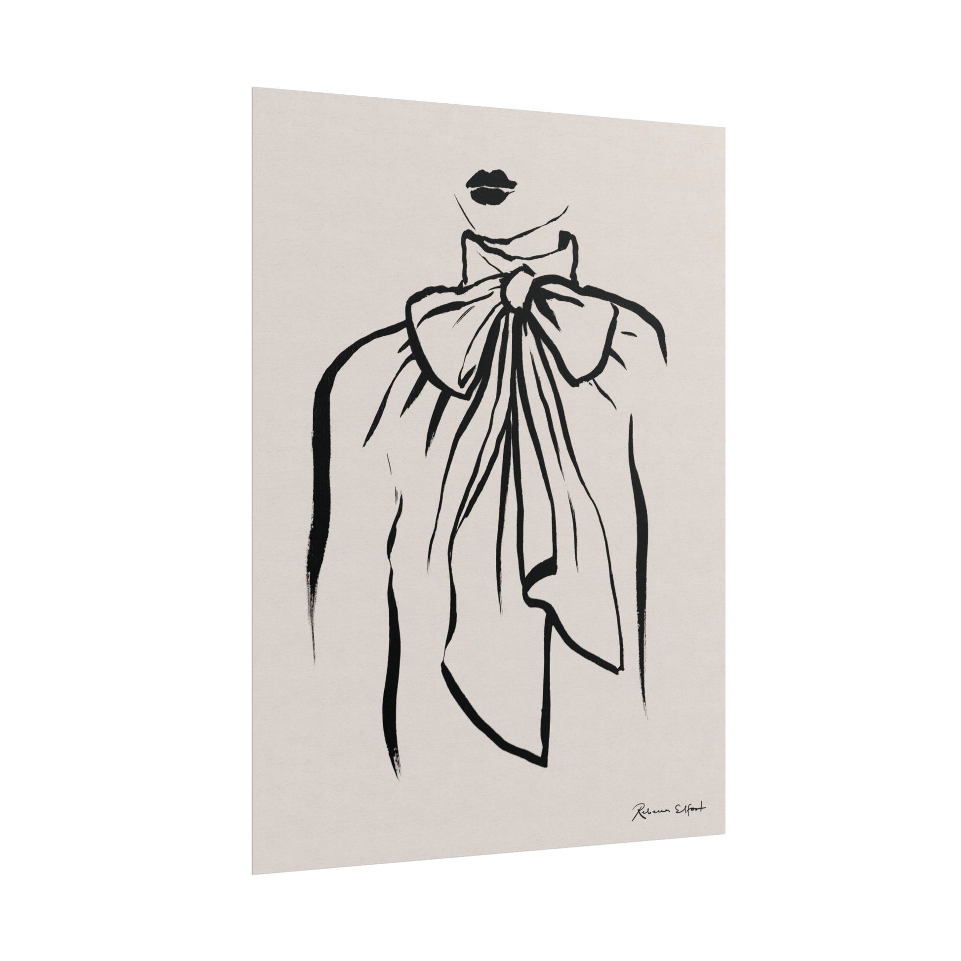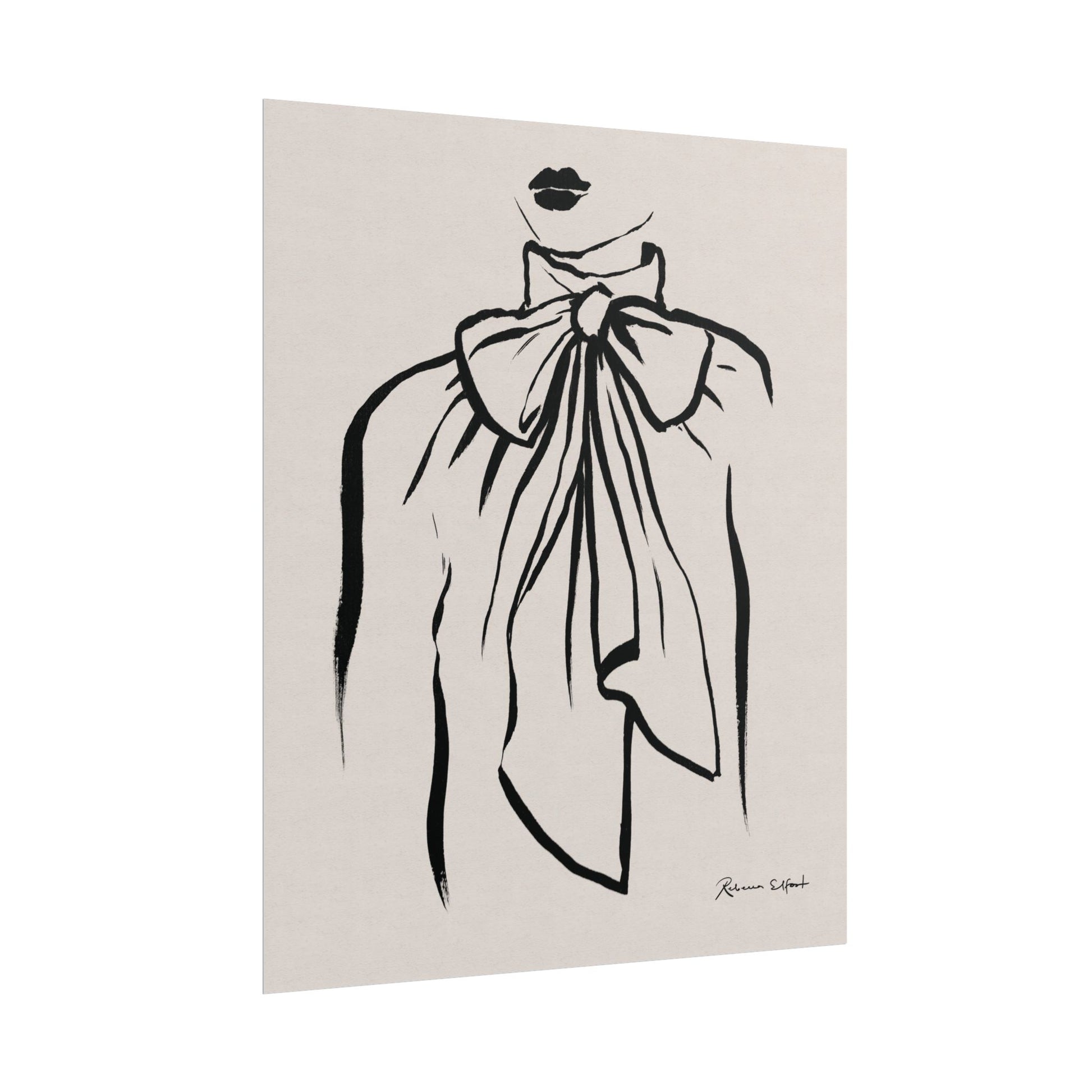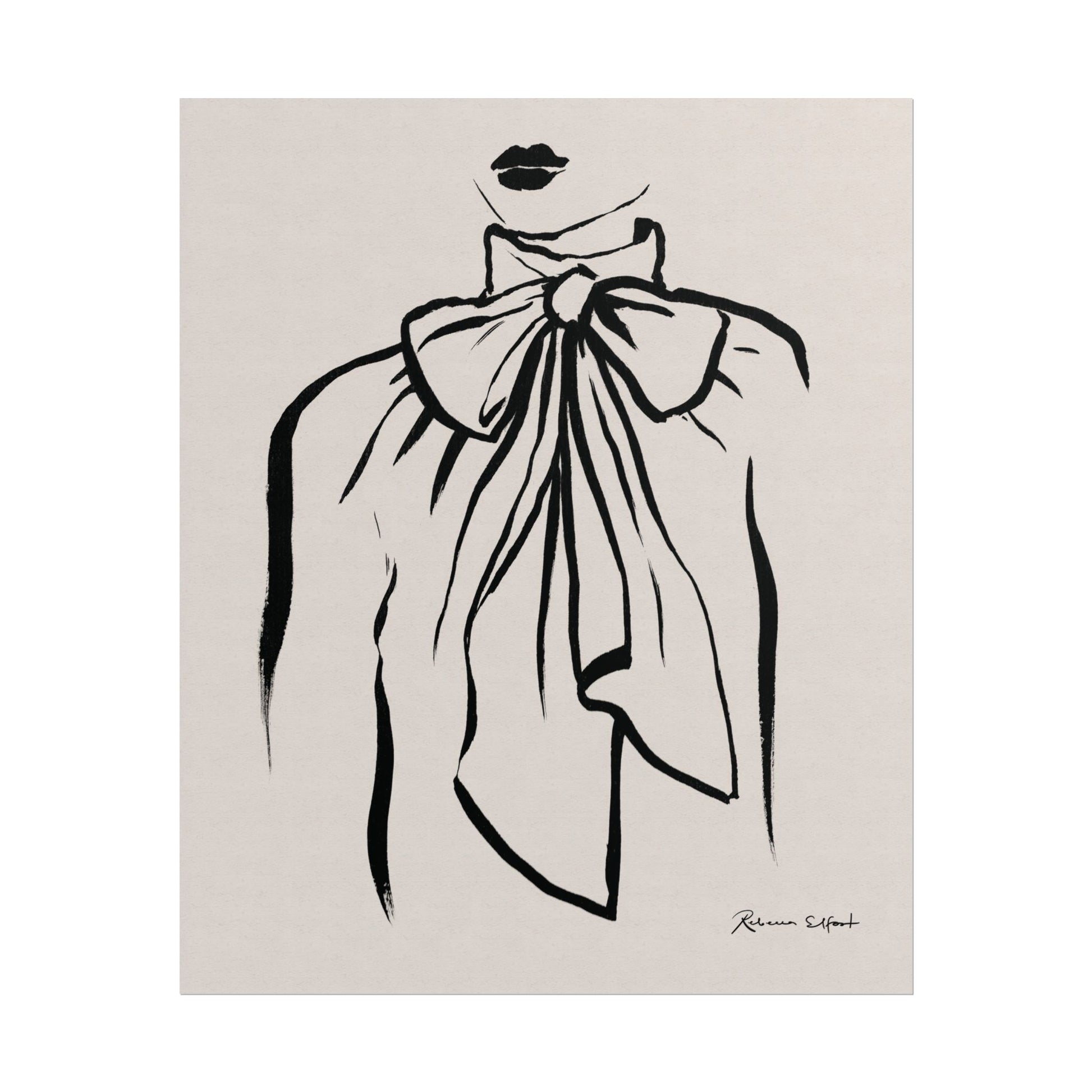 This art print brings Rebecca Elfast’s original ink painting into your space with bold graphic vibes. A fashion illustration featuring a bow tie blouse, rendered in confident black strokes, adds an eyecatching focus point to your space. Unframed and ready to unroll, the print slips into a wide range of interiors: a calm corner for evening reading, a sunlit bathroom shelf, or a gallery wall mixed with travel finds.