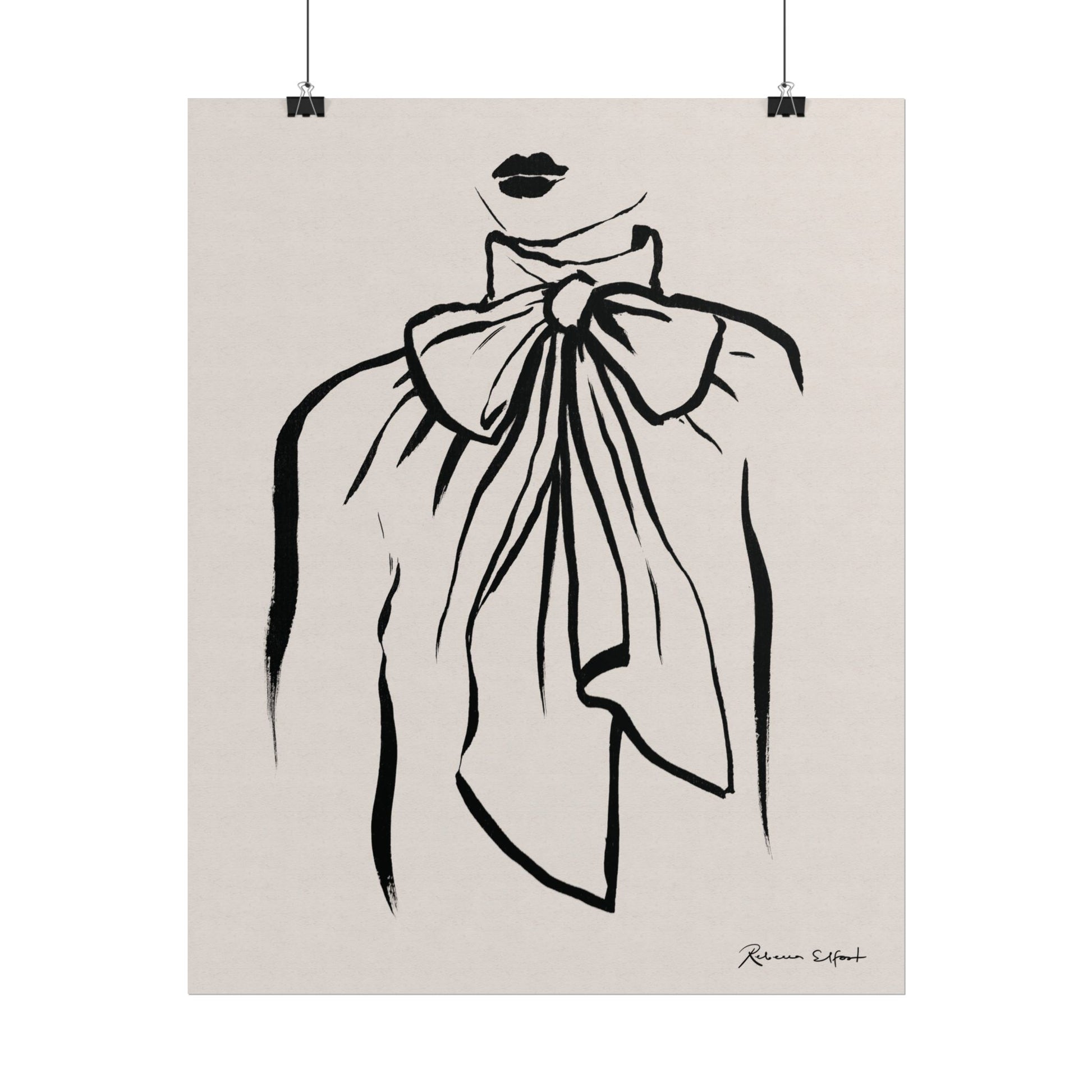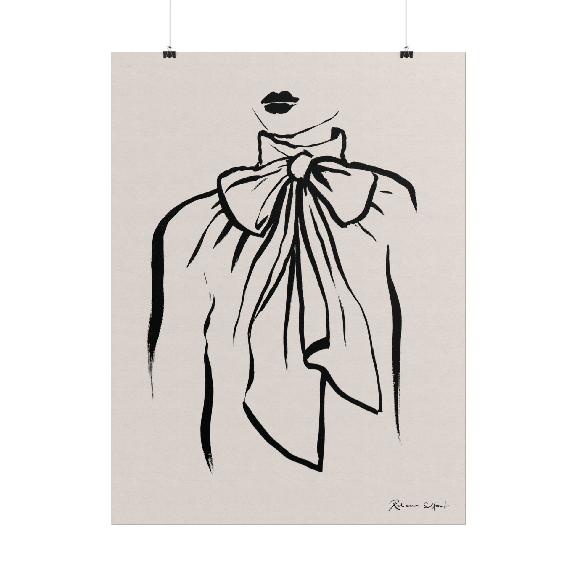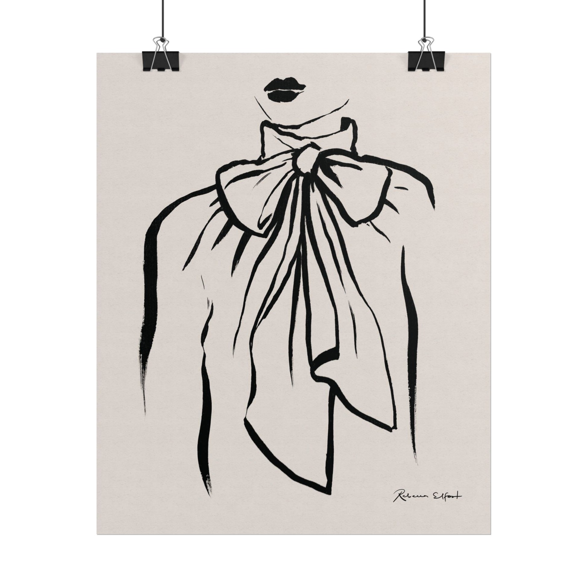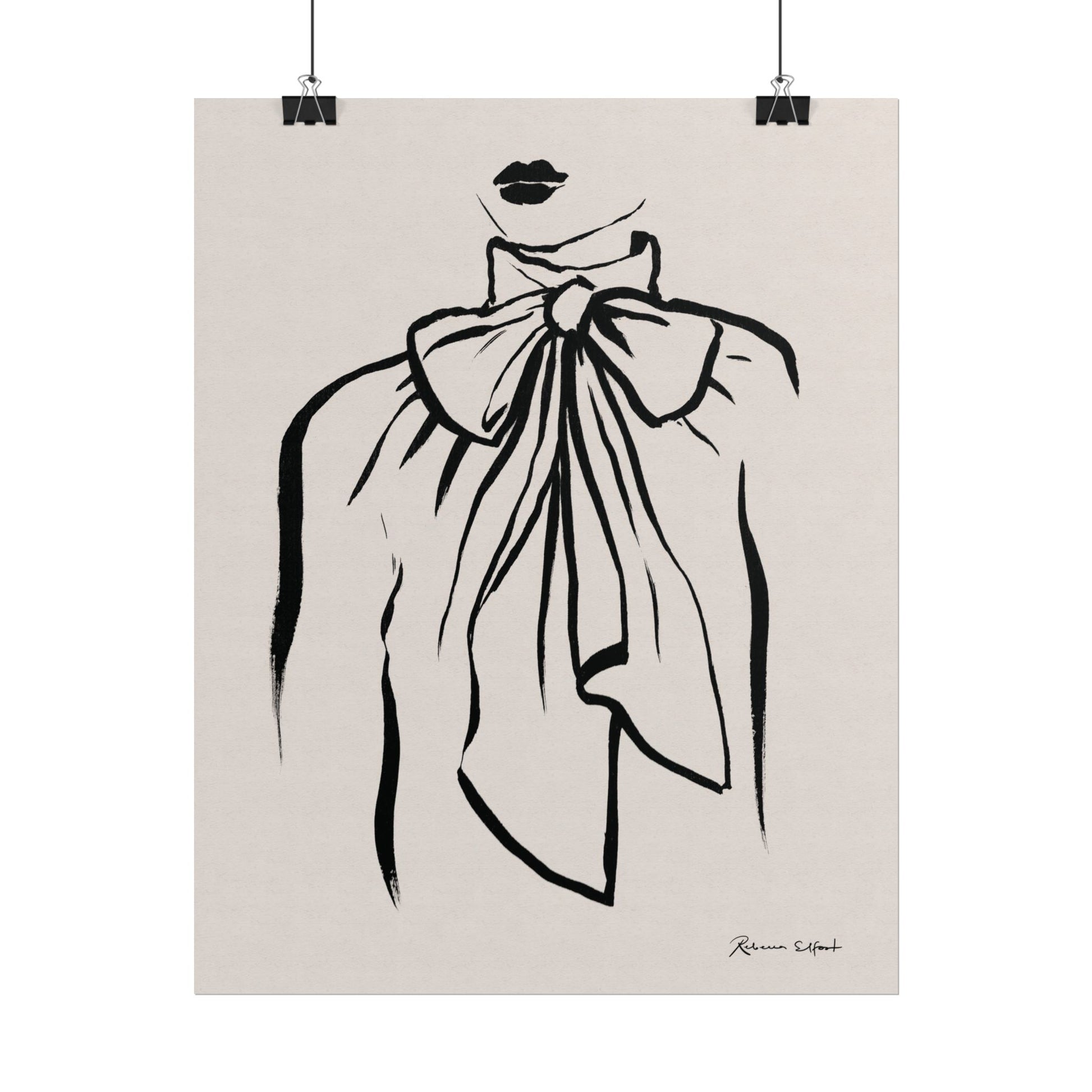 This art print brings Rebecca Elfast’s original ink painting into your space with bold graphic vibes. A fashion illustration featuring a bow tie blouse, rendered in confident black strokes, adds an eyecatching focus point to your space. Unframed and ready to unroll, the print slips into a wide range of interiors: a calm corner for evening reading, a sunlit bathroom shelf, or a gallery wall mixed with travel finds.