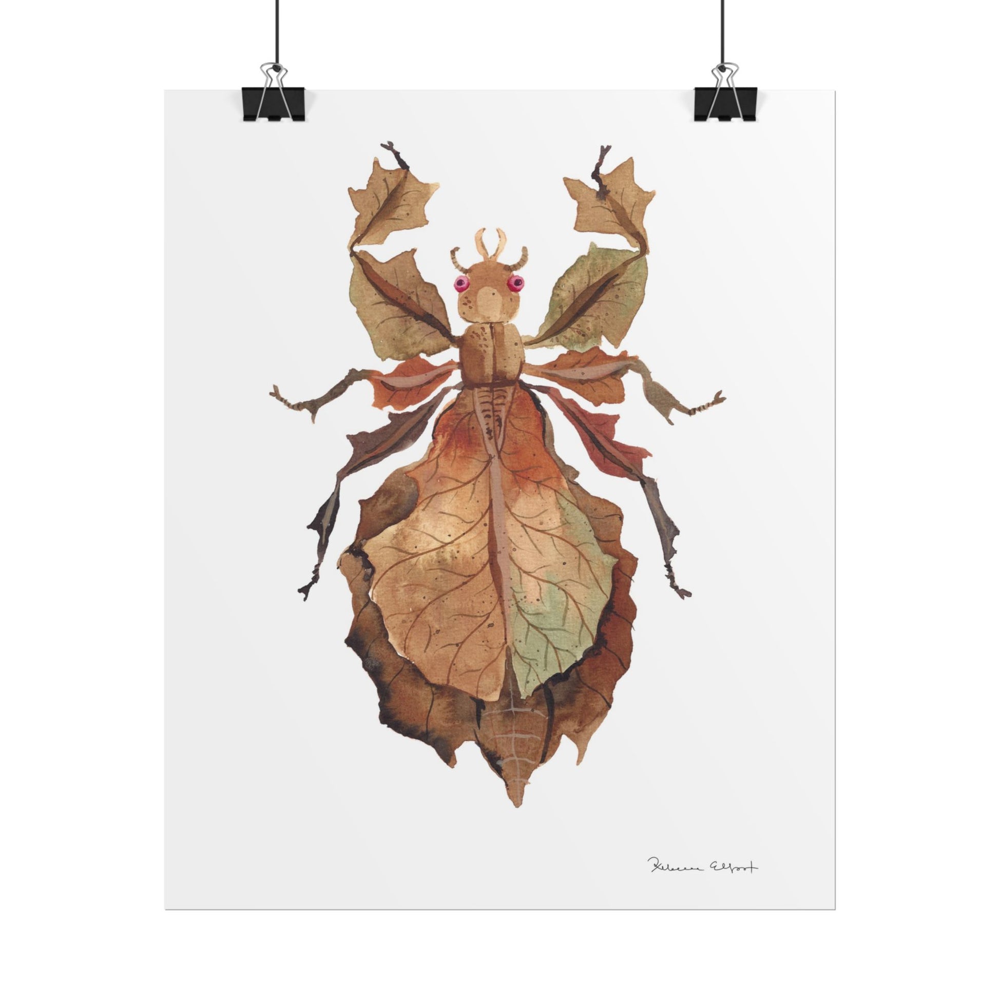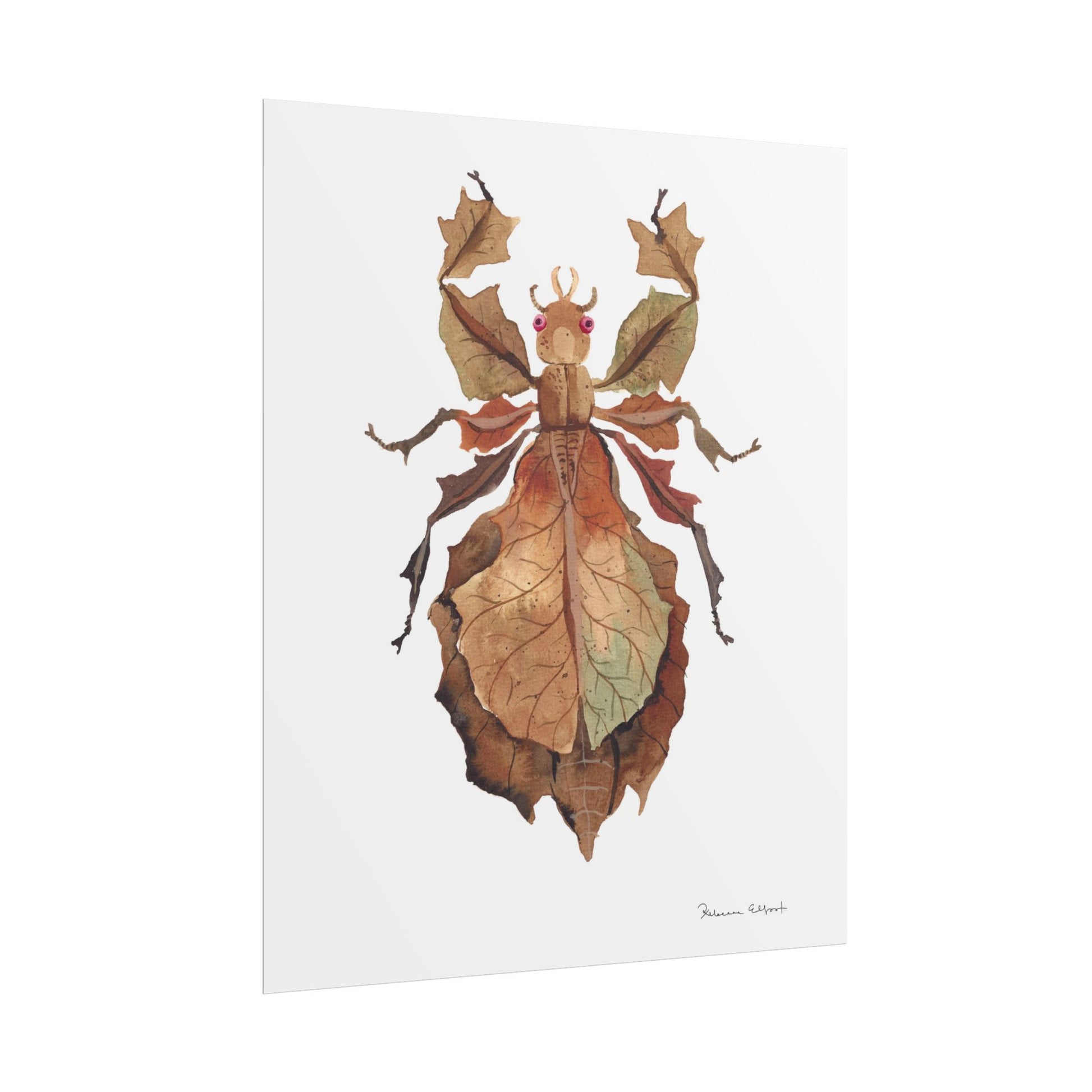 A beautiful art print of a brown stick/leaf insect, featuring bright and intense colors that won't fade over time. This poster is perfect for art lovers and nature enthusiasts, adding a touch of nature to any room. Ideal for gift-giving during birthdays, housewarmings, or as a decorative piece for special occasions.