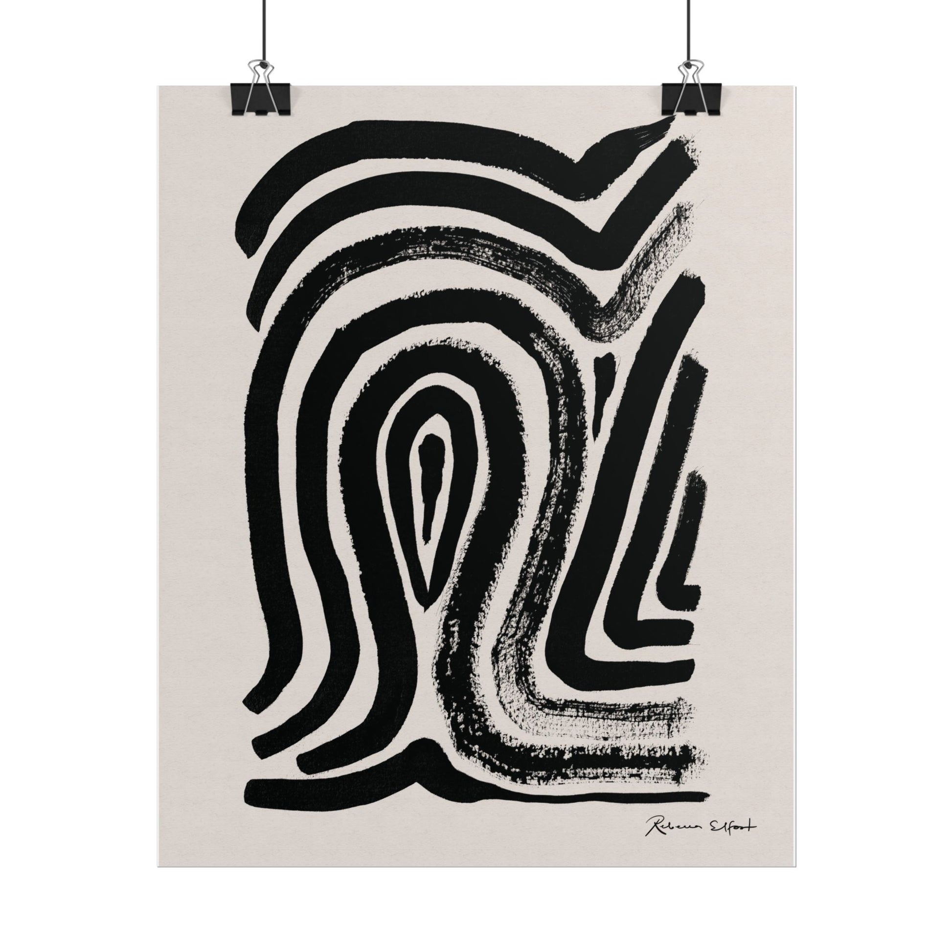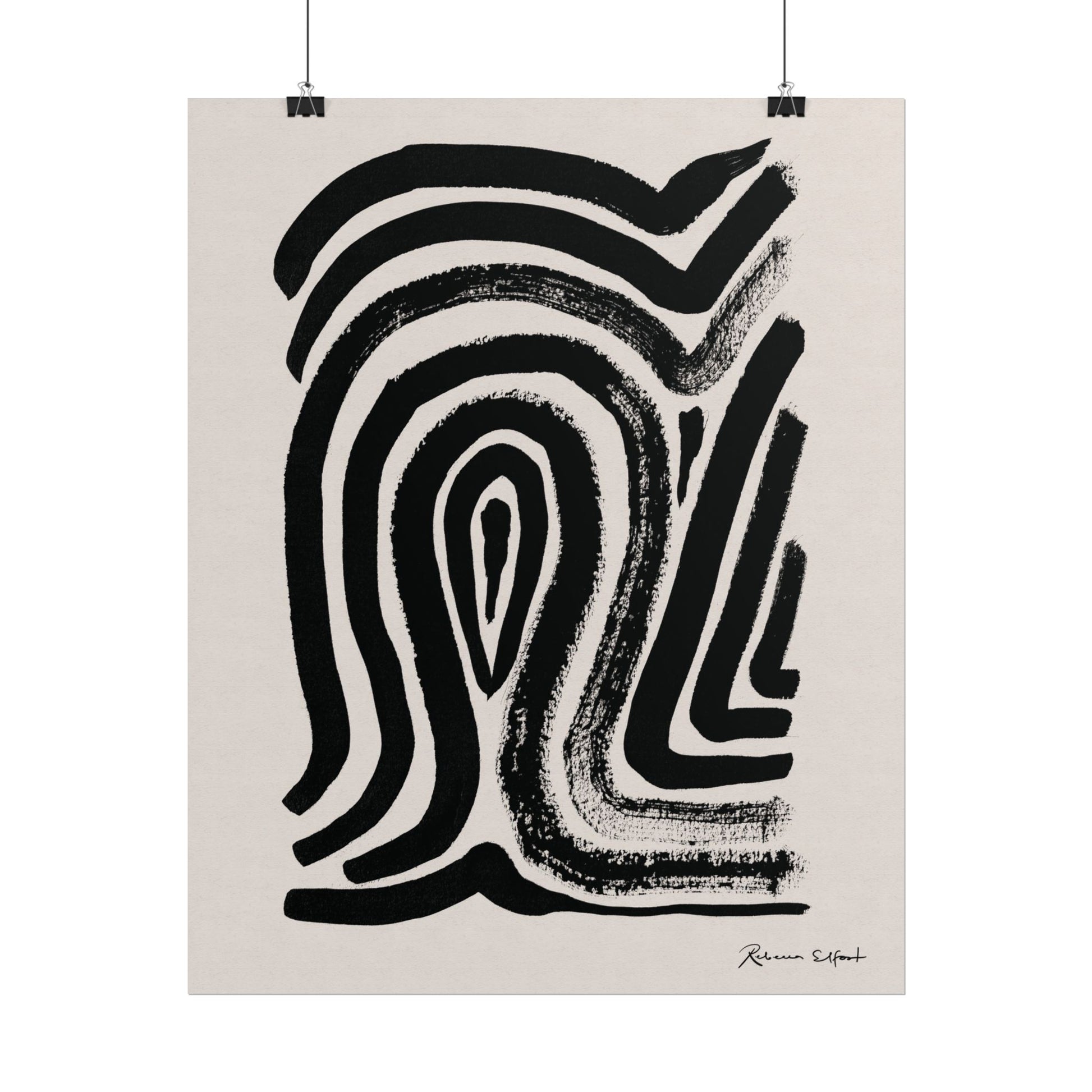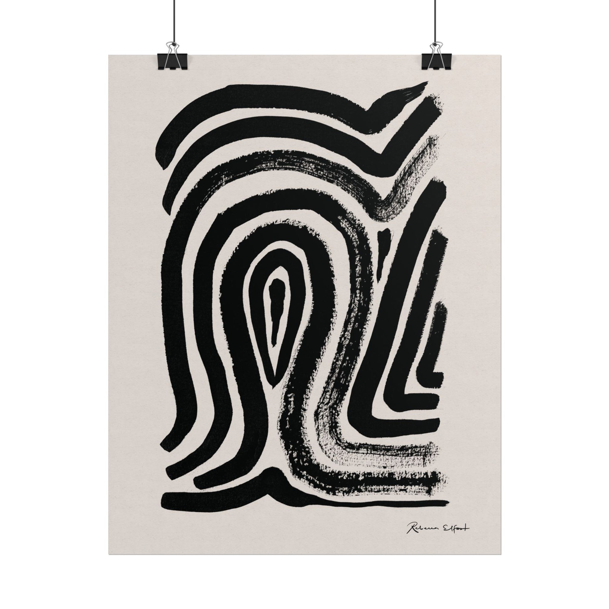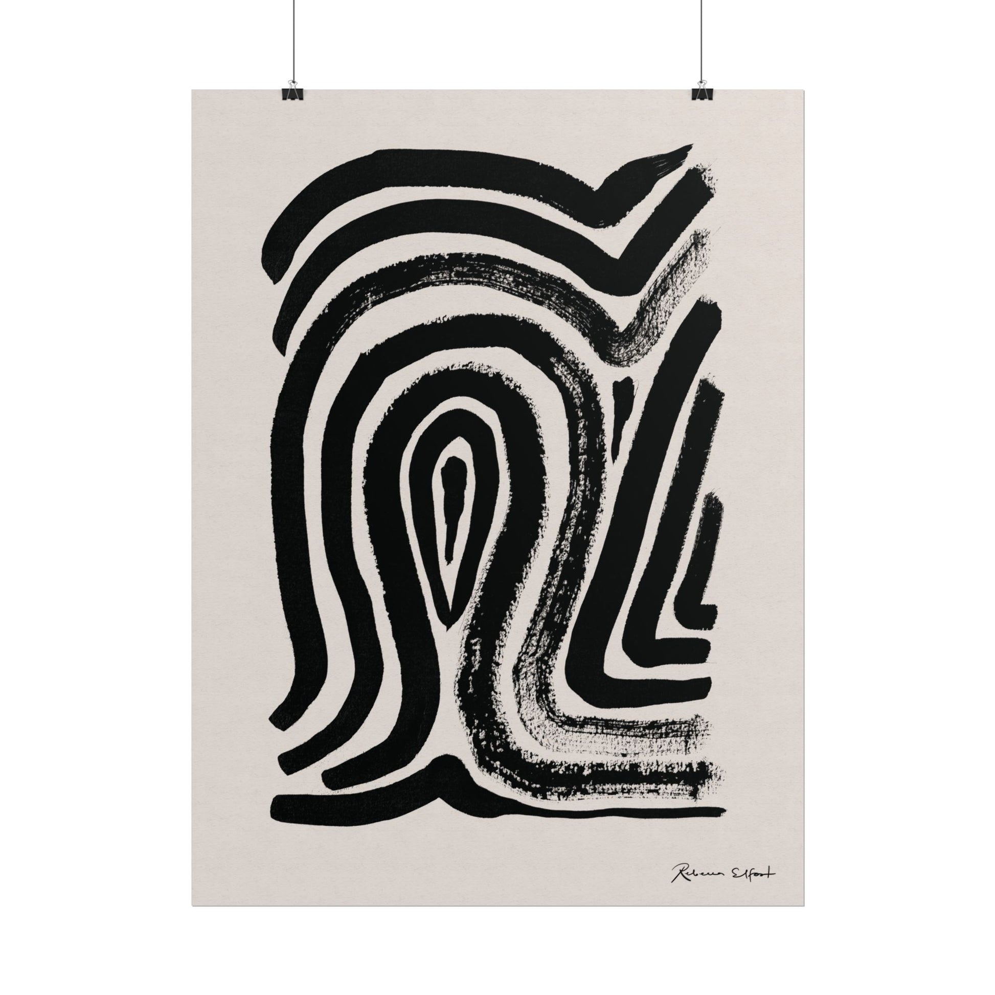 This art print brings Rebecca Elfast’s original ink painting into your space with bold graphic vibes. An abstract motif that reminds of a fingerprint, rendered in confident black strokes adds an eyecatching focus point to your space. Unframed and ready to unroll, the print slips into a wide range of interiors: a calm corner for evening reading, a sunlit bathroom shelf, or a gallery wall mixed with travel finds.