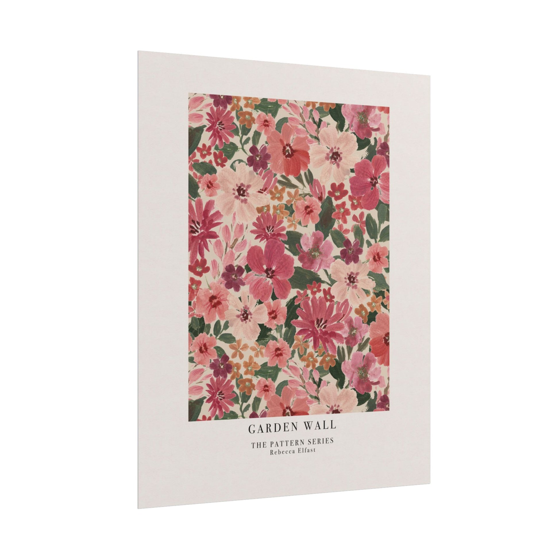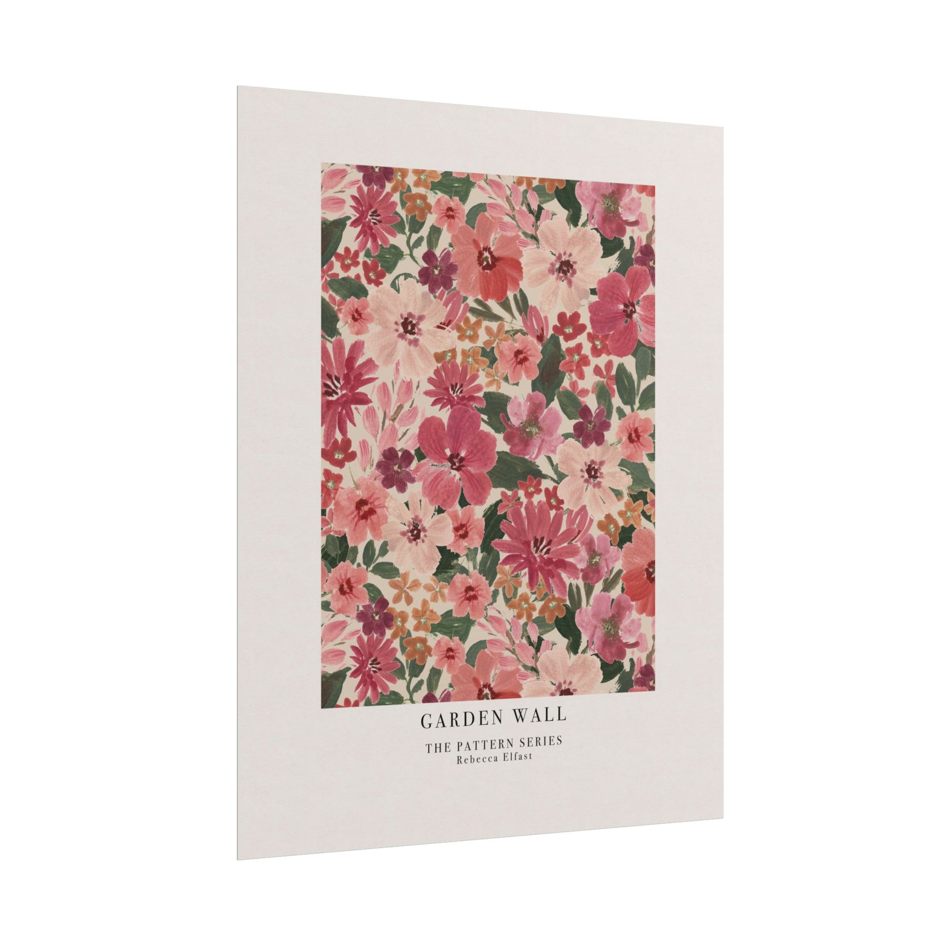 This art print brings Rebecca Elfast’s original artwork into your space, in the form of a beautiful pattern. This print features a bold, hand-painted floral in romantic shades of pink. Perfect for the garden lover. Unframed and ready to unroll, the print slips into a wide range of interiors: a calm corner for evening reading, a sunlit bathroom shelf, or a gallery wall mixed with travel finds.