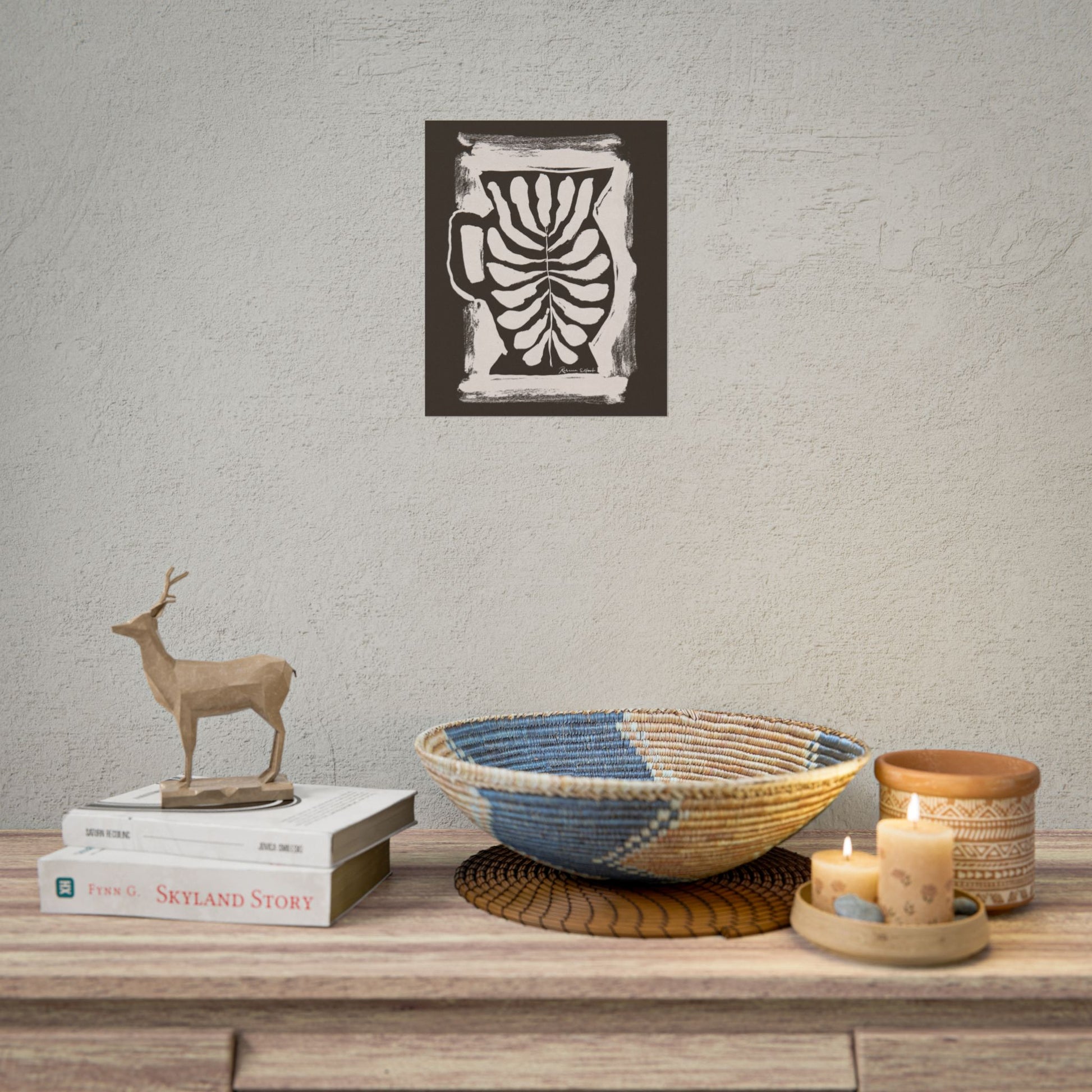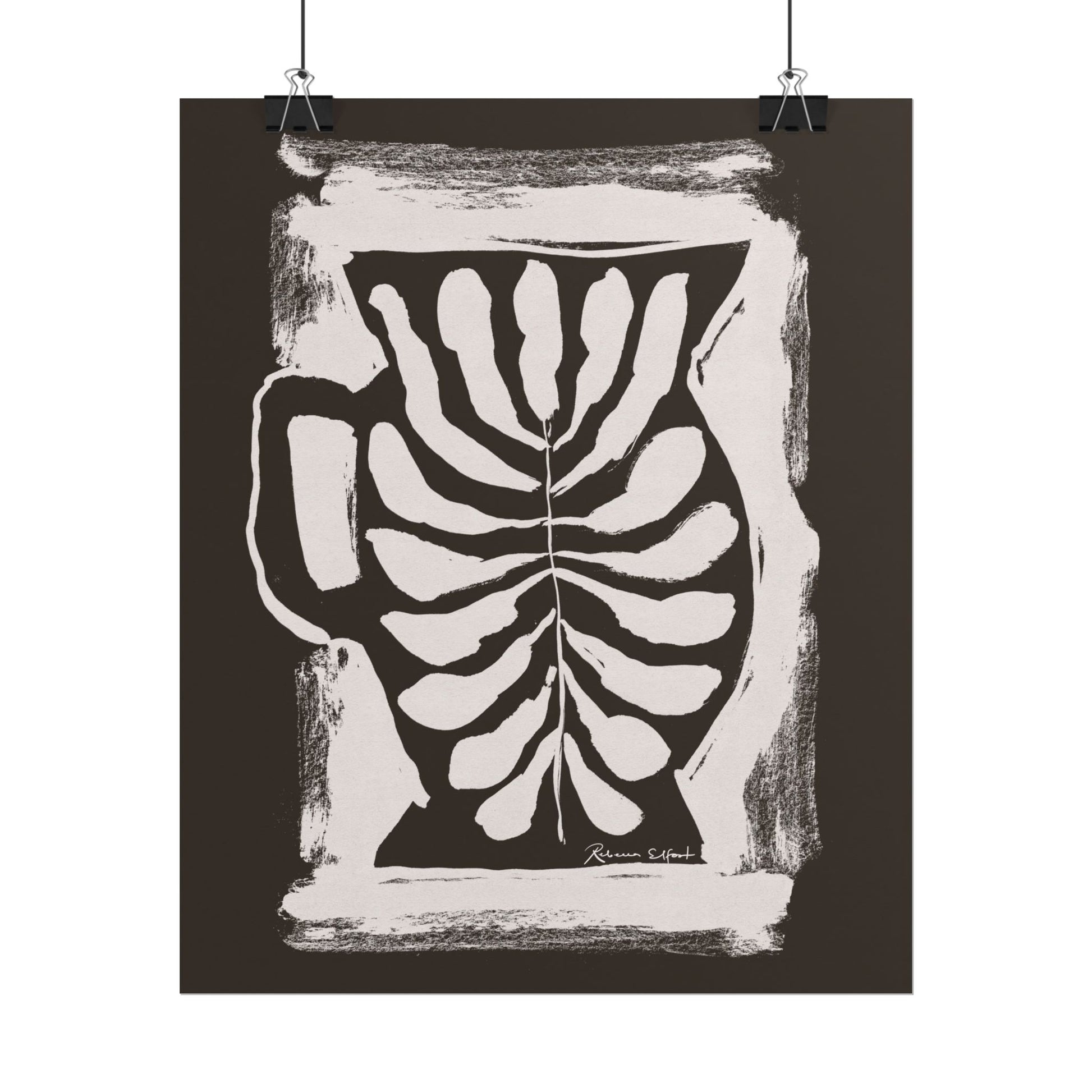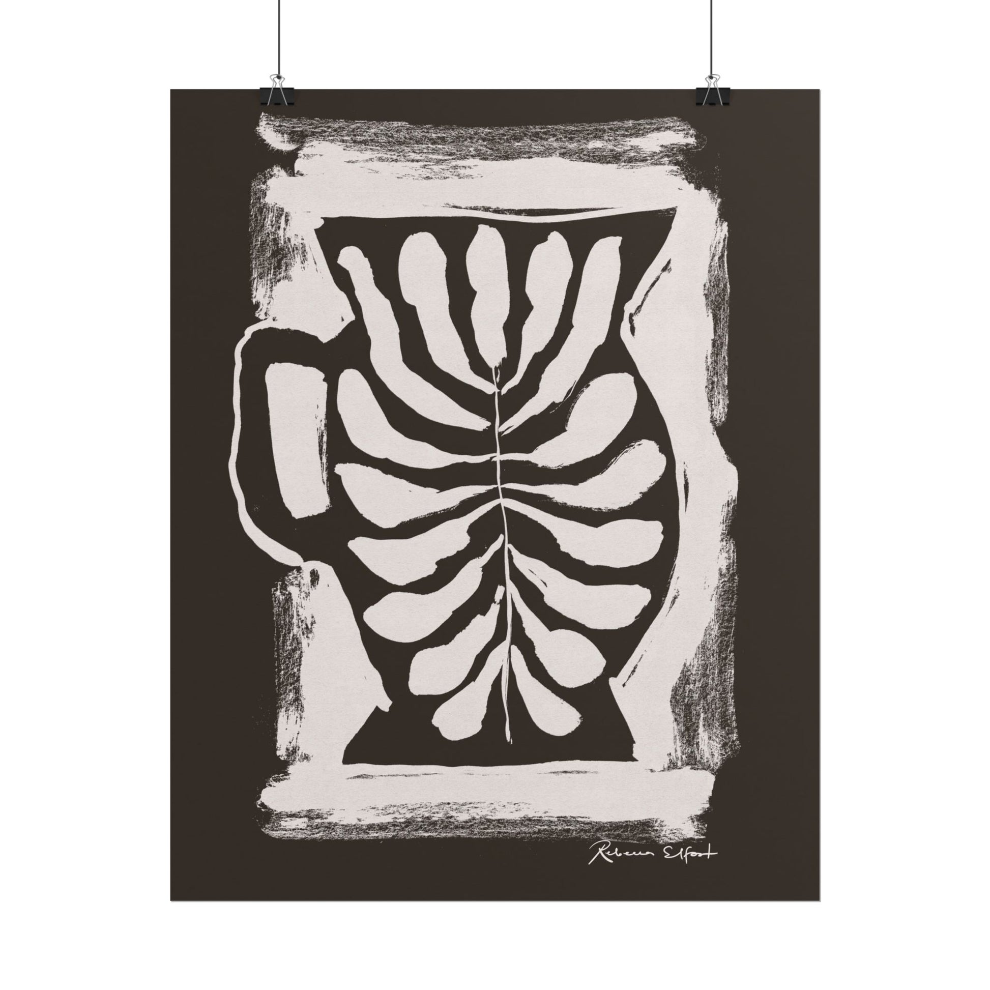 This art print brings Rebecca Elfast’s original ink painting into your space with bold graphic vibes. A ceramic pitcher with a botanical motif, rendered in confident creamy strokes, adds an eyecatching focus point to your space. Unframed and ready to unroll, the print slips into a wide range of interiors: a calm corner for evening reading, a sunlit bathroom shelf, or a gallery wall mixed with travel finds.