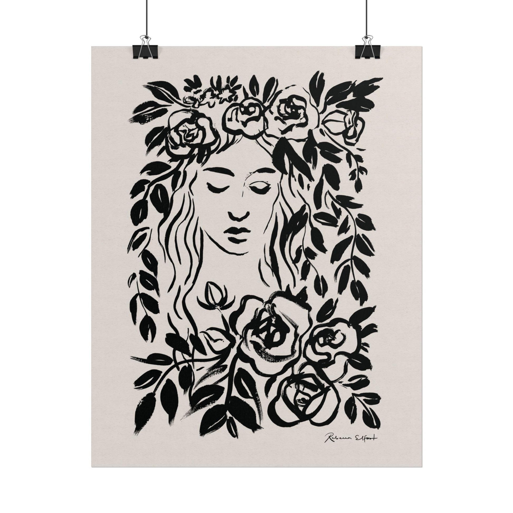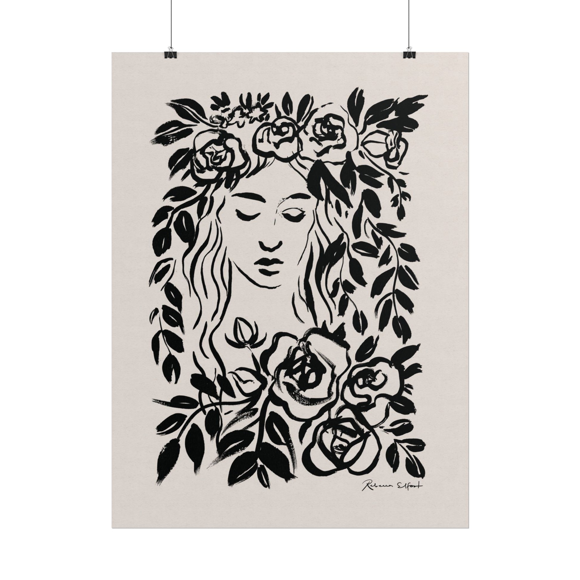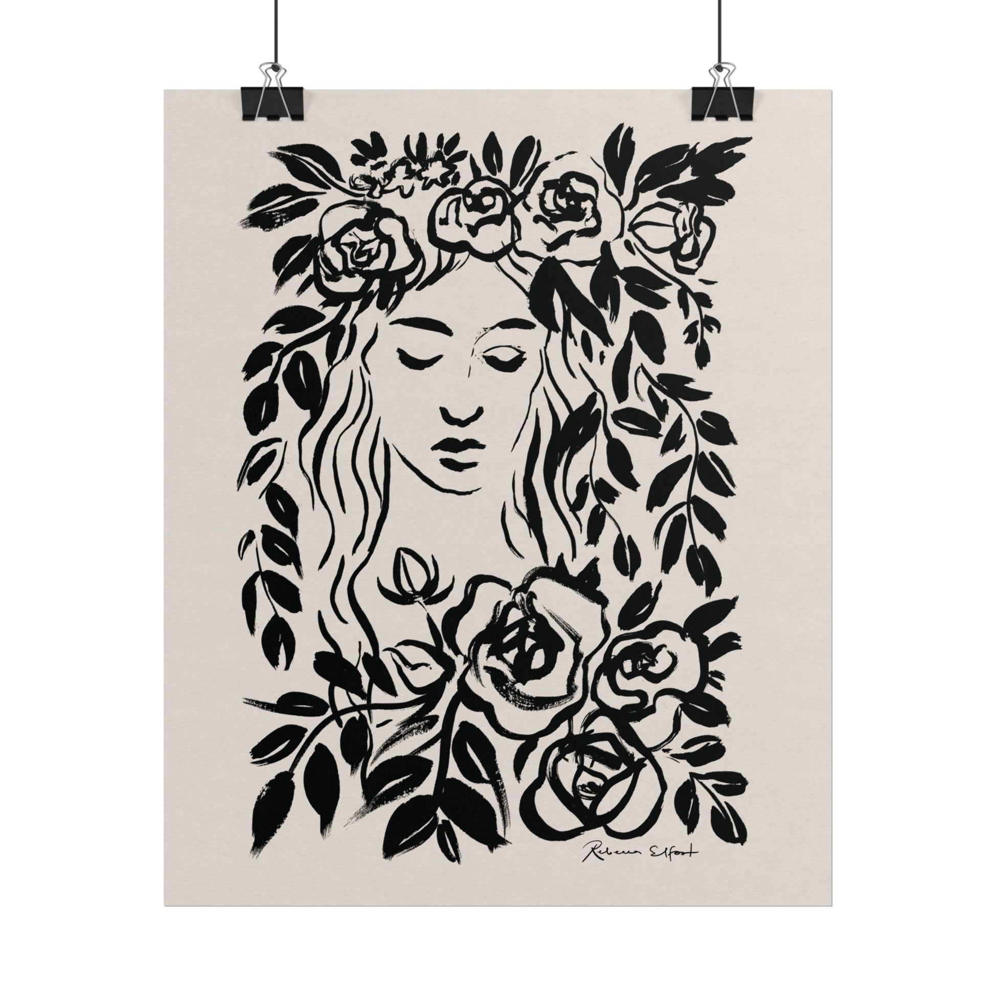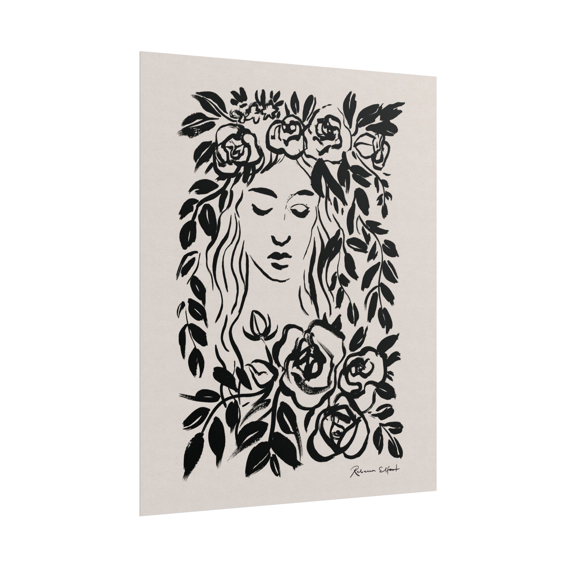 This art print brings Rebecca Elfast’s original ink painting into your space with bold graphic vibes. An illustration featuring a woman surrounded by flowers, rendered in confident black strokes, adds an eyecatching focus point to your space. Unframed and ready to unroll, the print slips into a wide range of interiors: a calm corner for evening reading, a sunlit bathroom shelf, or a gallery wall mixed with travel finds.