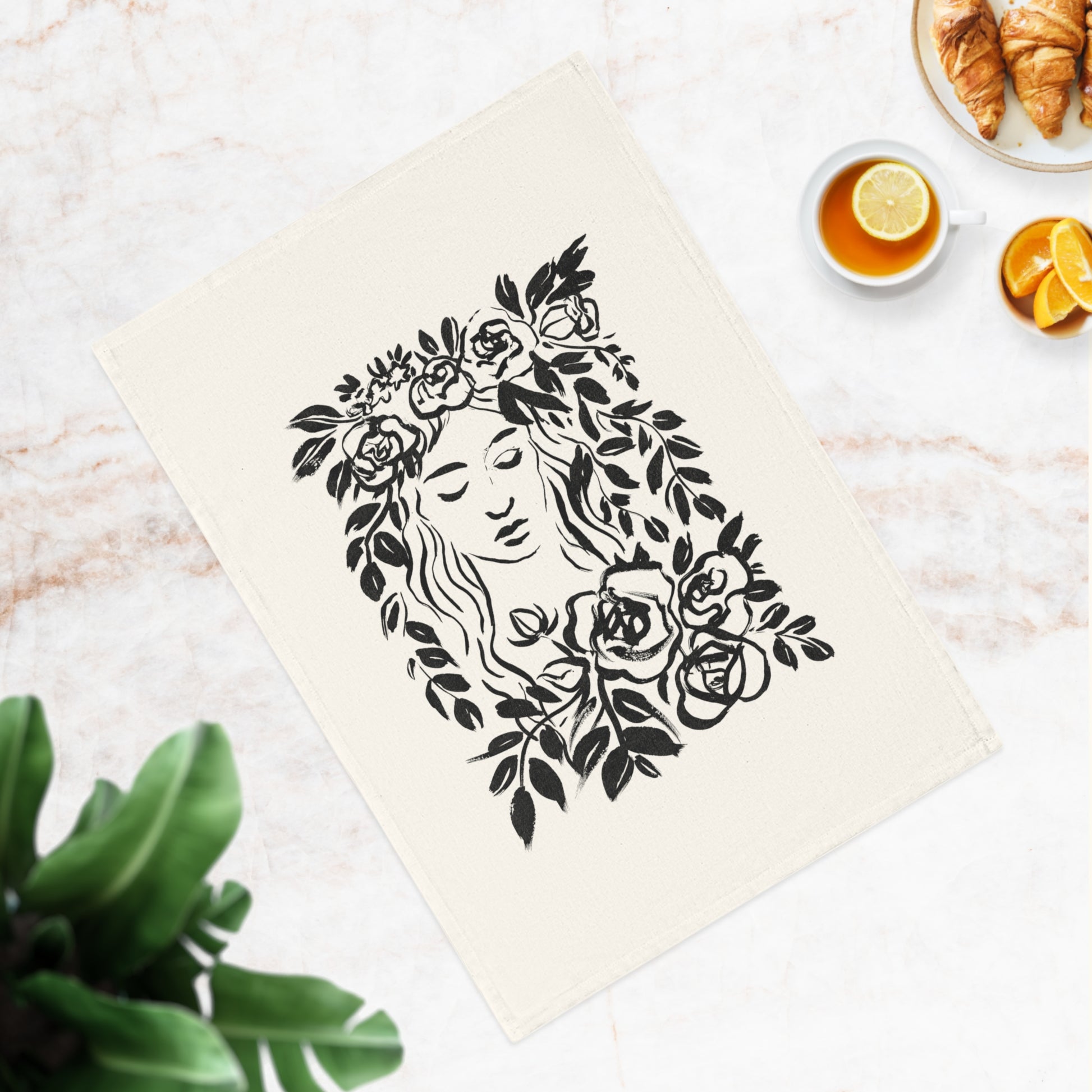 Wreath Girl Organic Tea Towel